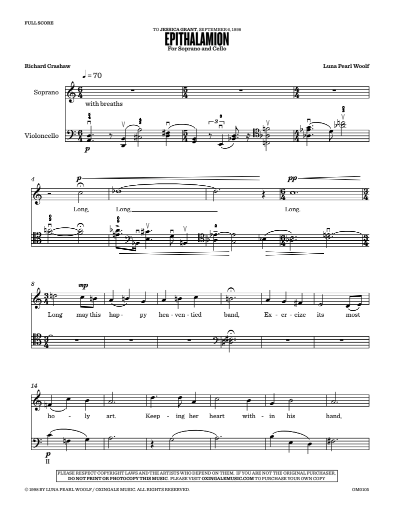 By Luna Pearl Woolf | For Soprano and Cello | 7′