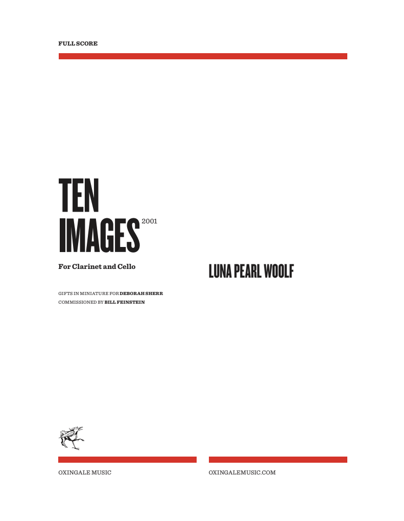 Ten Images is made up of ten short pieces, ranging from 30 seconds to 2 minutes in length. Each miniature captures a musical idea, their sequence characterized by contrast. The clarinet and cello lend by turns support and counterpoint, blending voice or solo declamation to the musical image. The motivation for each movement is articulated with a descriptive tempo marking: