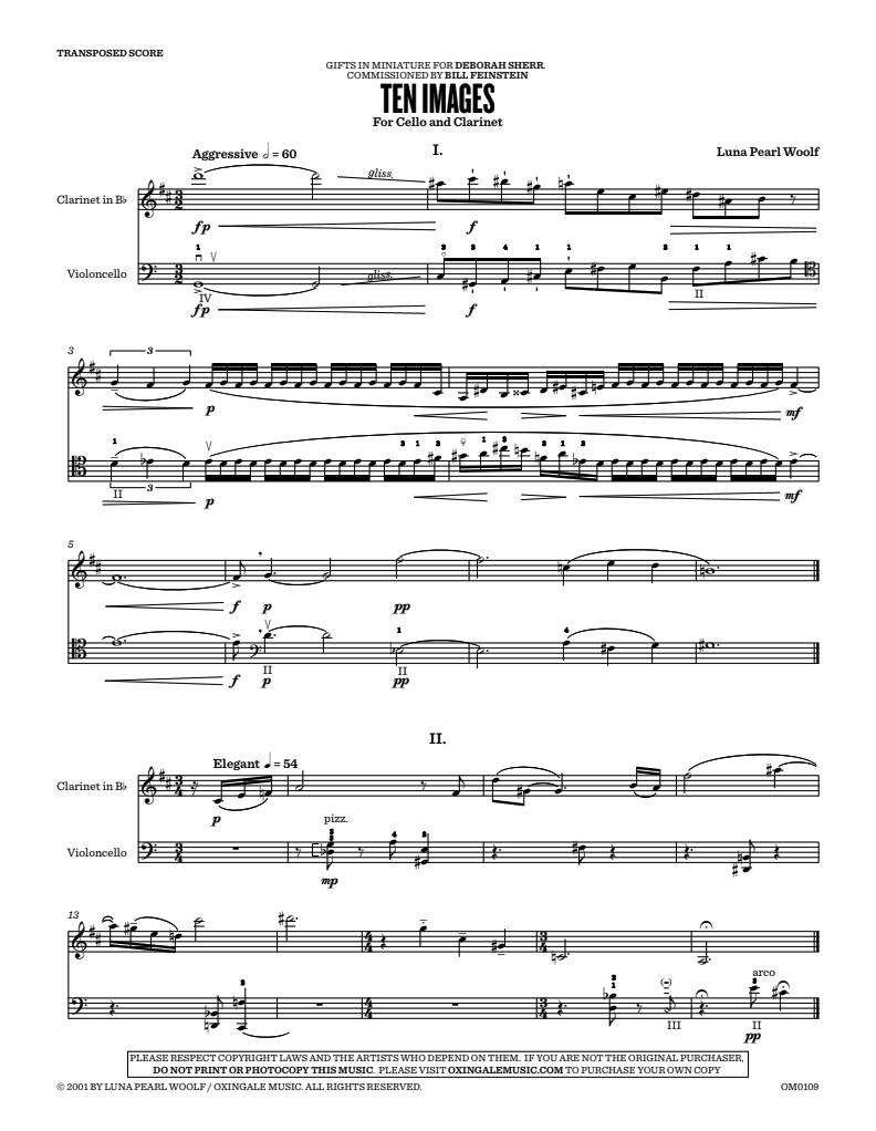By Luna Pearl Woolf | For Clarinet and Cello | 10′