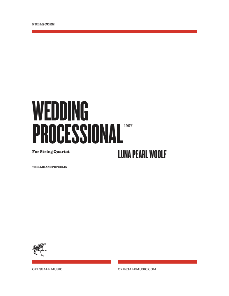Written originally for the wedding of Ellie and Peter Lin in 1997, this processional was played twice at that ceremony, which became a double wedding with that of the composer and Matt Haimovitz.