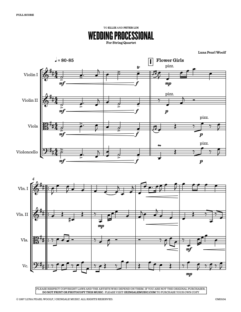 This short piece for string quartet is arranged in three parts, with optional repeats to keep the music flowing in the event of a delay in the procession.