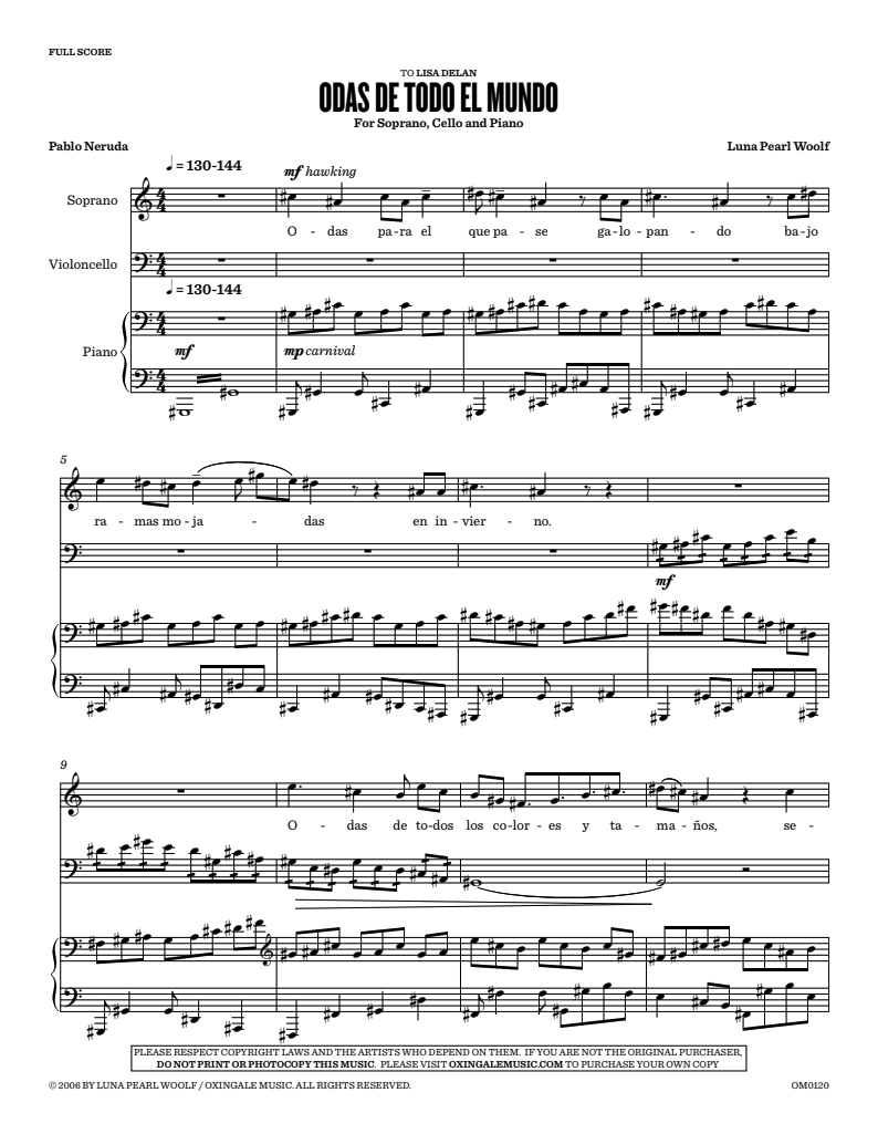 By Luna Pearl Woolf | For Soprano, Cello and Piano | 8′
