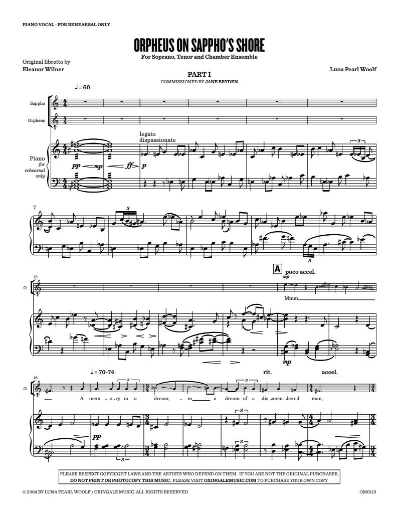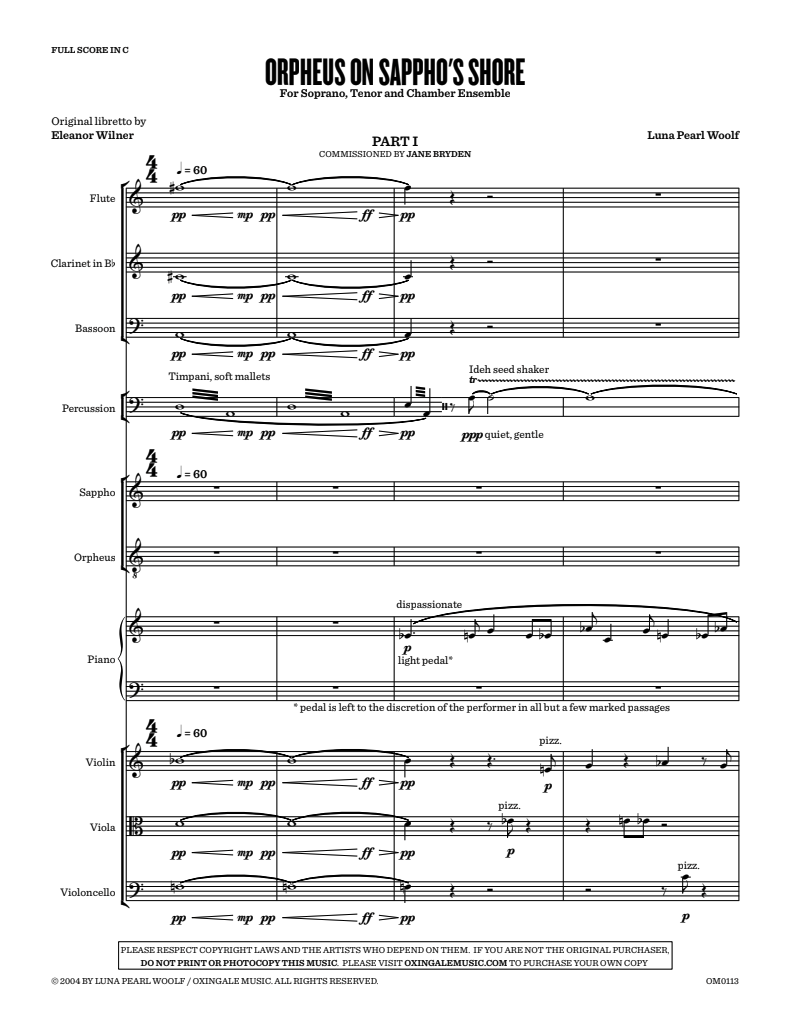 By Luna Pearl Woolf | For Soprano, Tenor and Chamber Orchestra | 45′