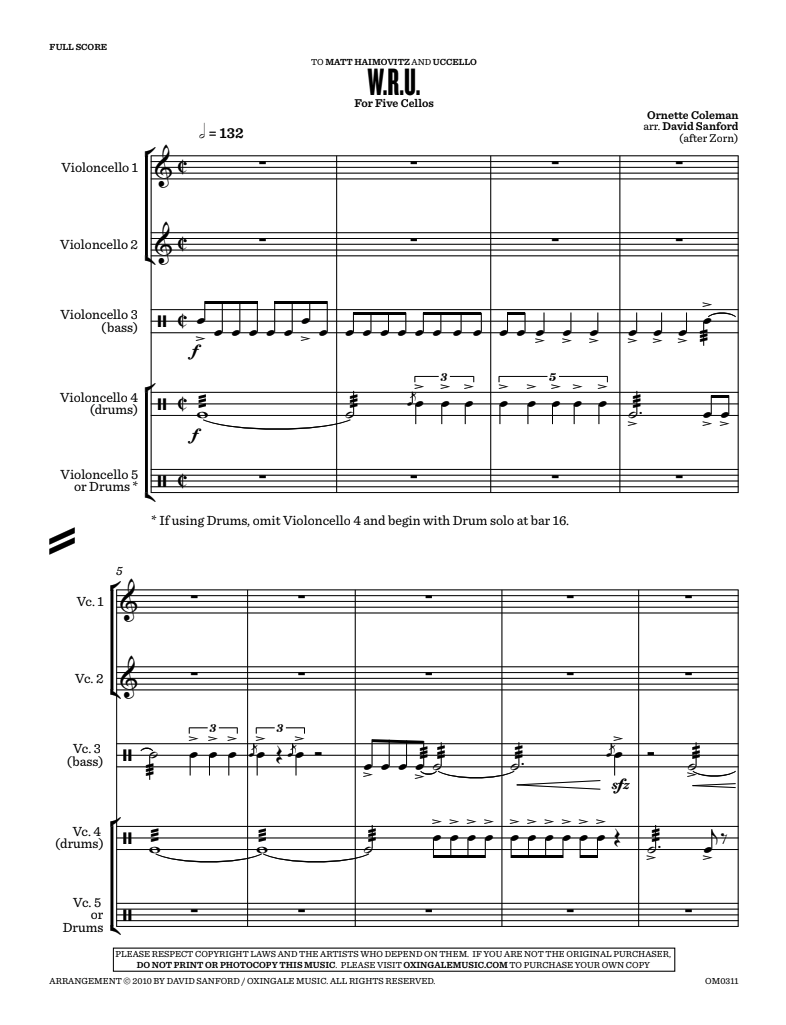 By Ornette Coleman/arr. by David Sanford | For Five Cellos | 4′