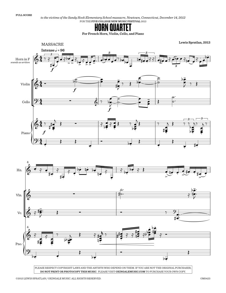 By Lewis Spratlan | For French Horn, Violin, Cello, and Piano | 15′