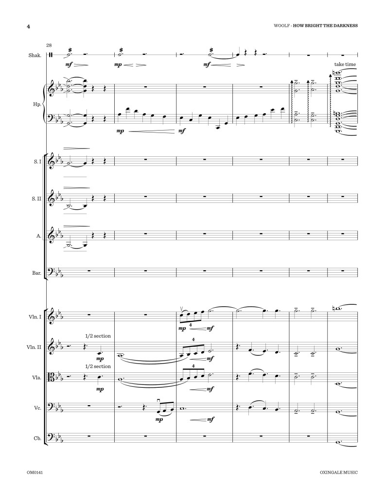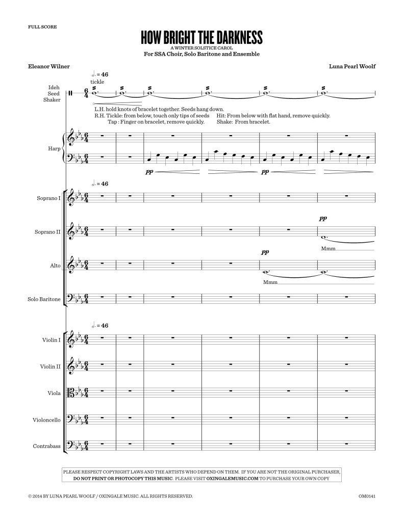 By Luna Pearl Woolf | For Solo Baritone, Women’s Chorus, Harp, Percussion, and String Orchestra | 6′