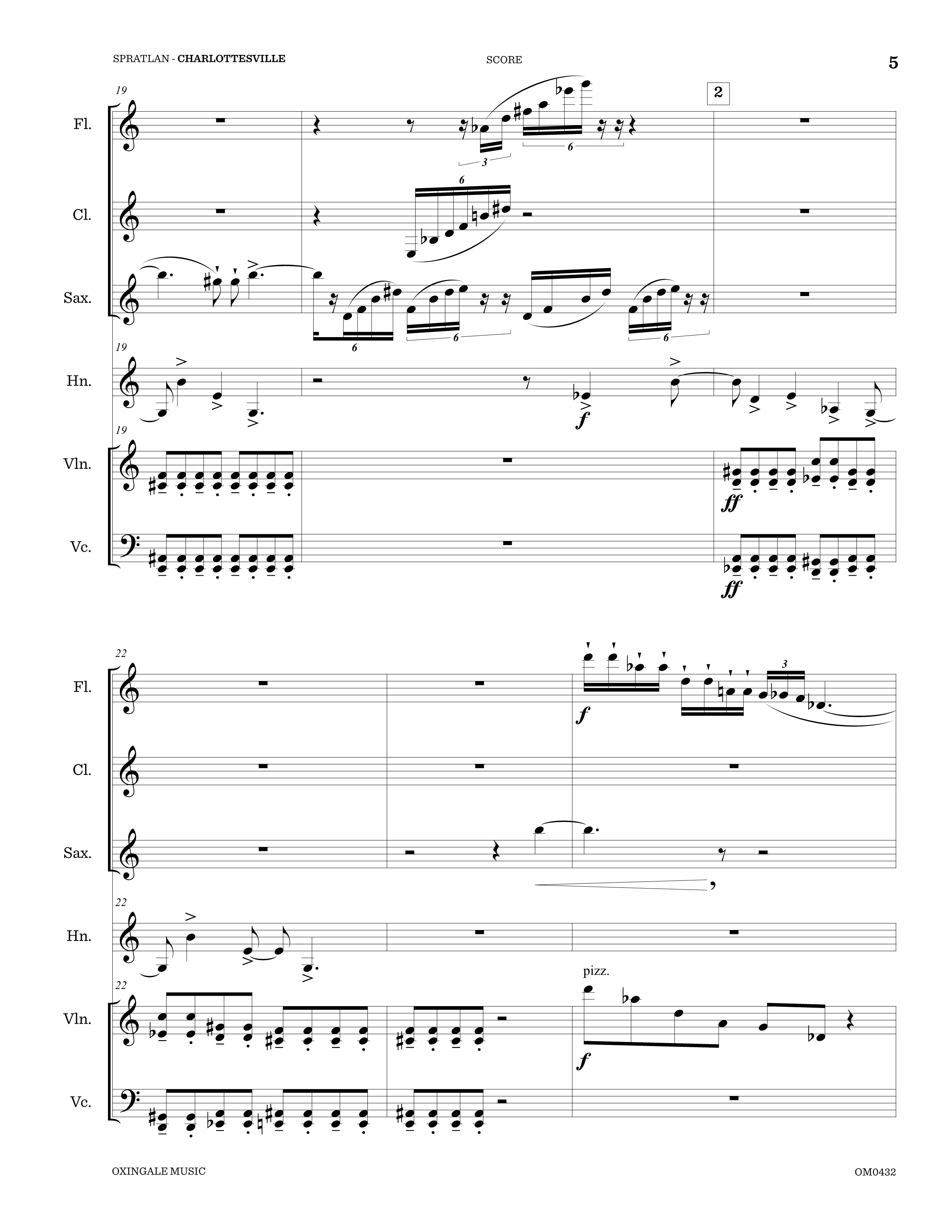 Instrumentation: For Flute, Clarinet in B-Flat, Alto Saxophone, Horn in F, Violin, Cello