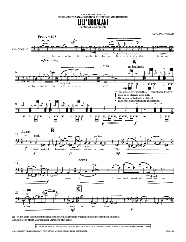 By Luna Pearl Woolf | For Solo Cello| 10′