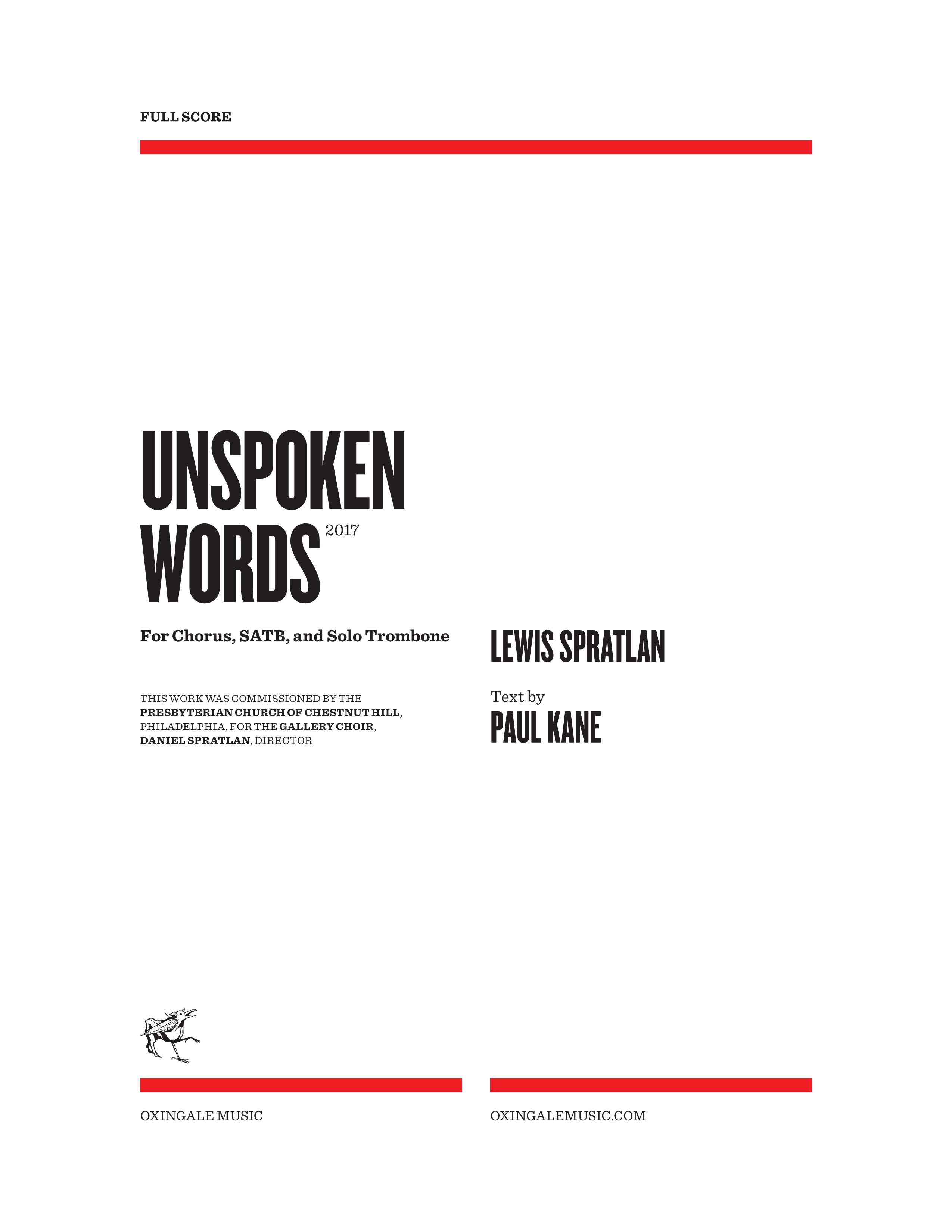 By Lewis Spratlan | For SATB Chorus and Solo Trombone | 15′