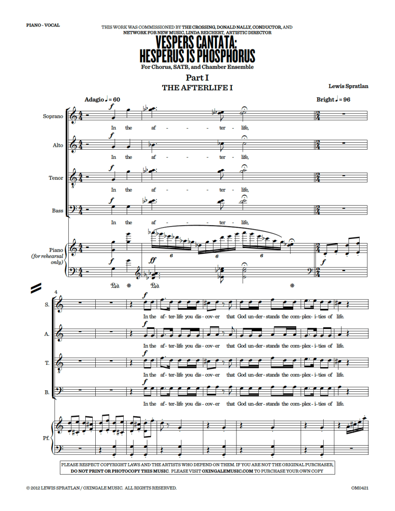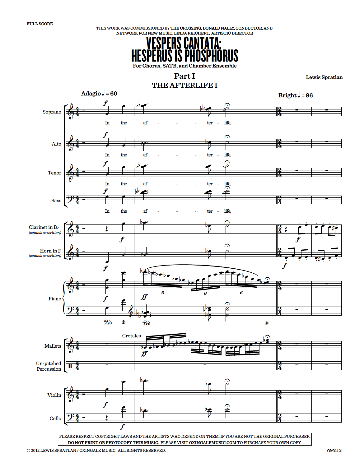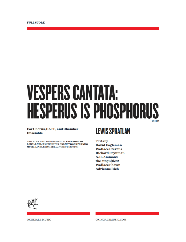 By Lewis Spratlan | For Chorus, SATB, and Chamber Ensemble | 65′