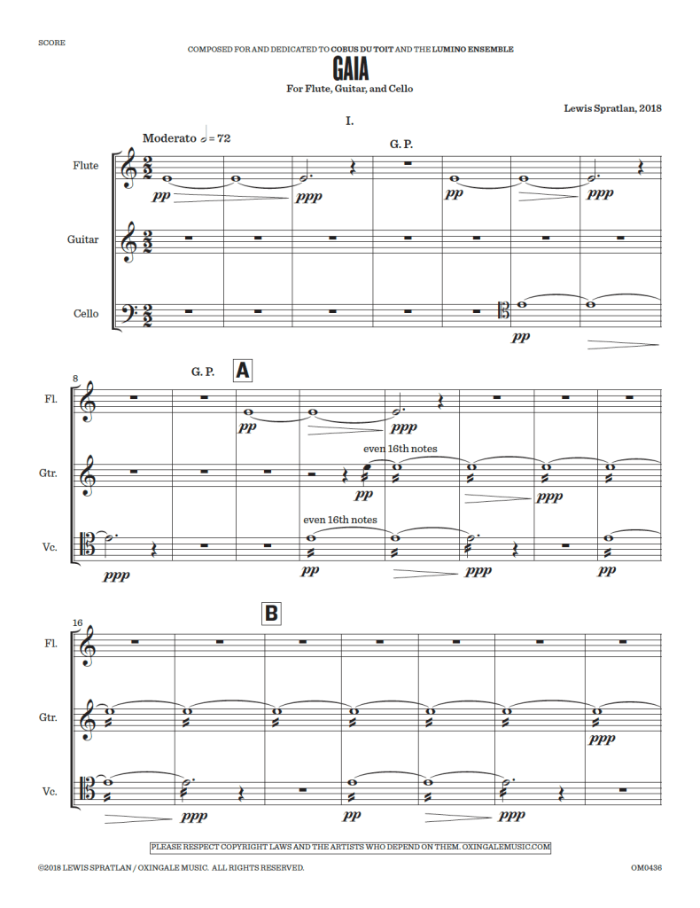 By Lewis Spratlan | For Flute, Guitar, and Cello | 15′