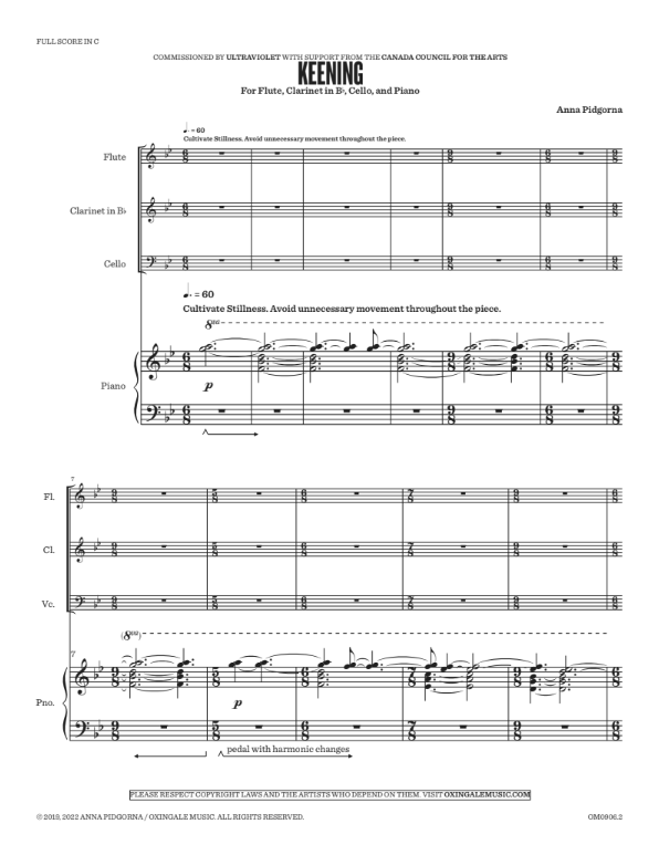 By Anna Pidgorna | For Flute, Clarinet in B-Flat, Cello, and Piano | 11′