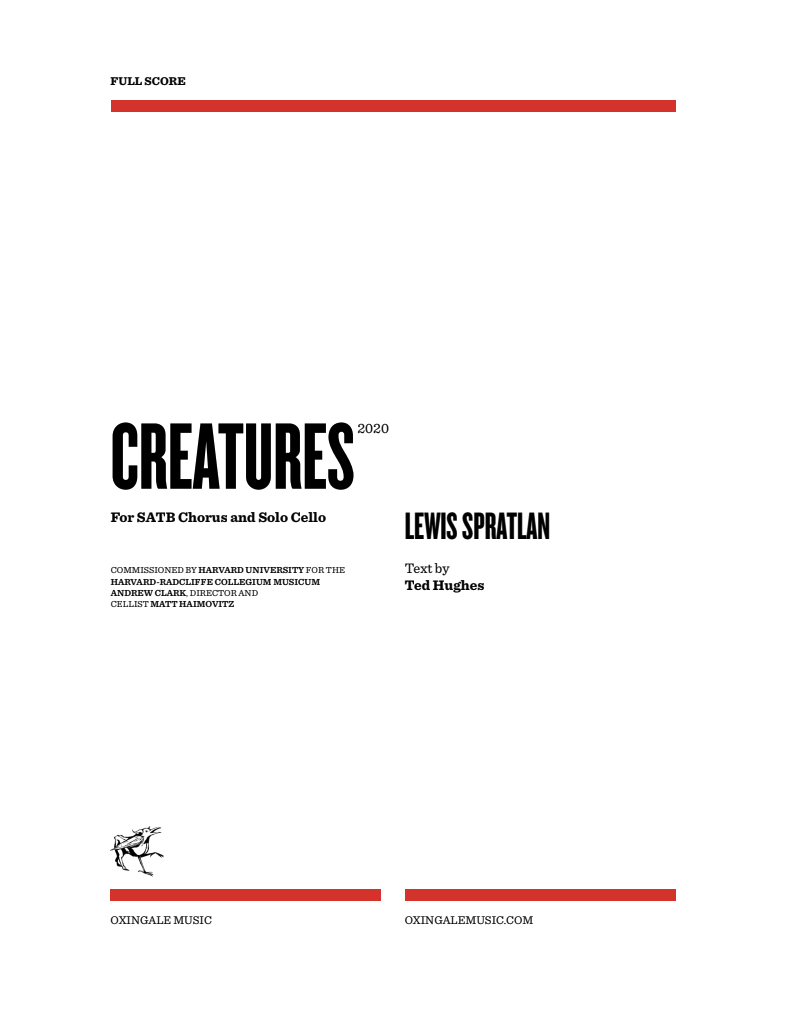 Creatures is both a choral work and a little cello concerto, with choir replacing orchestra as accompaniment. But symbiosis is hard at work here, the cello illustrating the text while the choir amplifies the cello, and the whole, as a unit, portrays Hughes’s insights into the creatures’ lives in our lives.