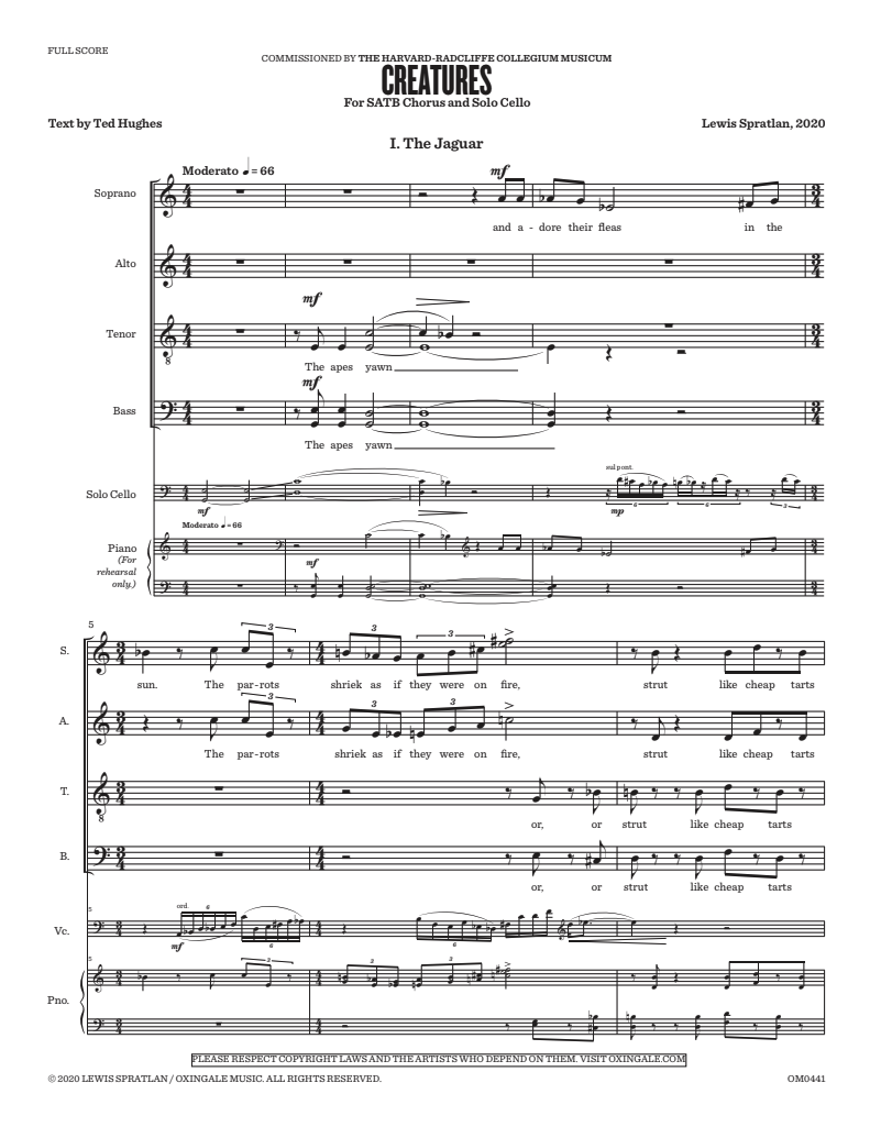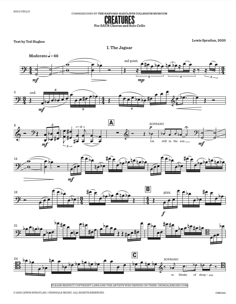 By Lewis Spratlan | For For SATB Chorus and Solo Cello | 25′