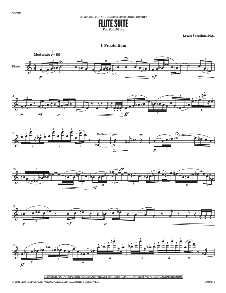 By Lewis Spratlan | For Solo Flute | 17′