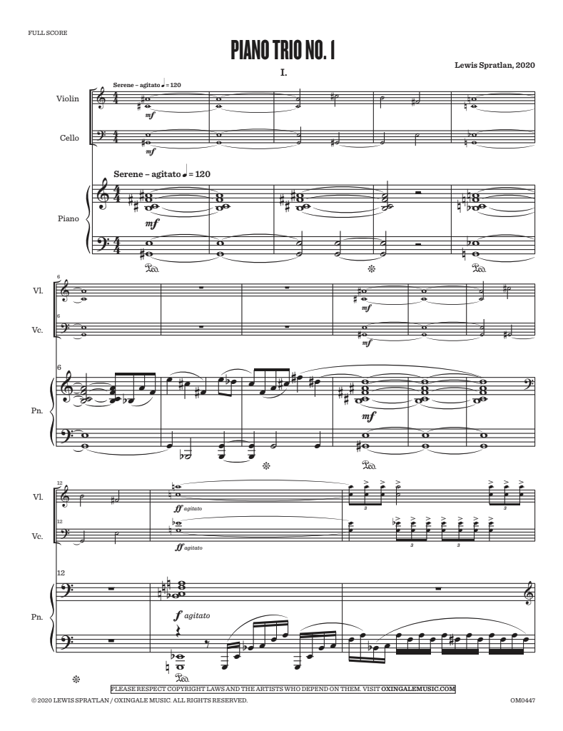 By Lewis Spratlan | For For Violin, Cello, and Piano | 19′