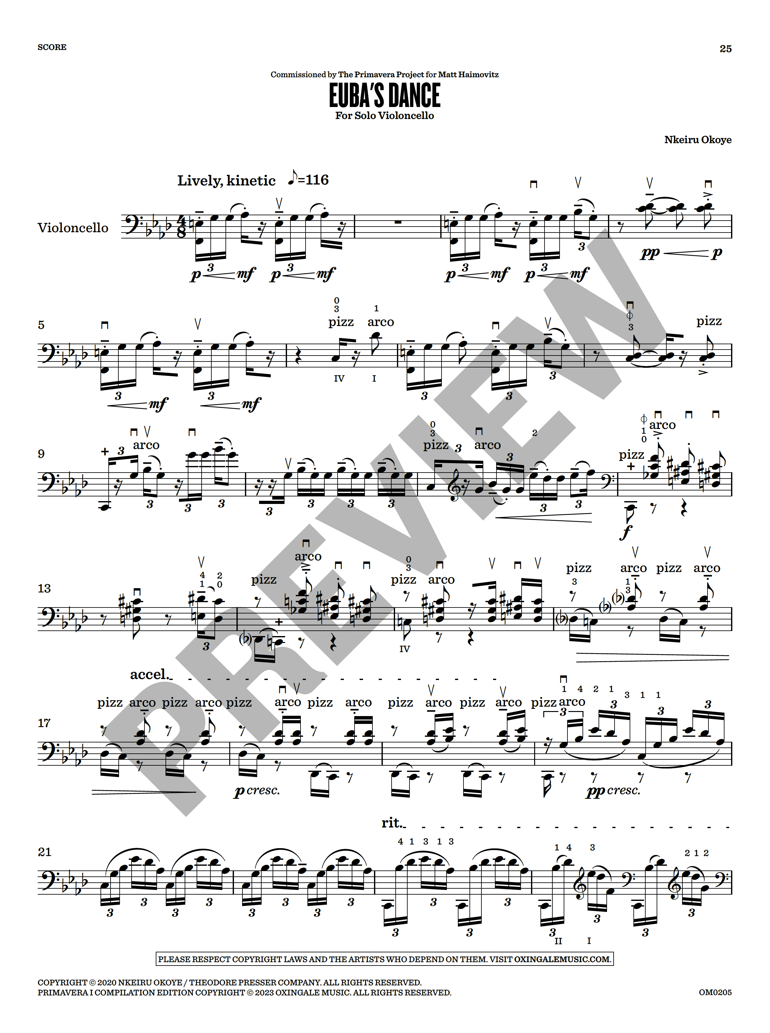 Through a series of compilation scores, Oxingale Music is bringing these pieces to current and future generations along with my performance notes—these are the fingerings, bowings, and other suggestions that I have developed through working directly with the composers as I performed and recorded the works for the first time. I see these editorial elements as a snapshot in time. No doubt, my own ideas about the pieces will continue to evolve, and while I hope these editions offer you insight into them, I encourage you to find your own solutions. Like all music worthy of enduring through time, there is no one “right” way to interpret these works.