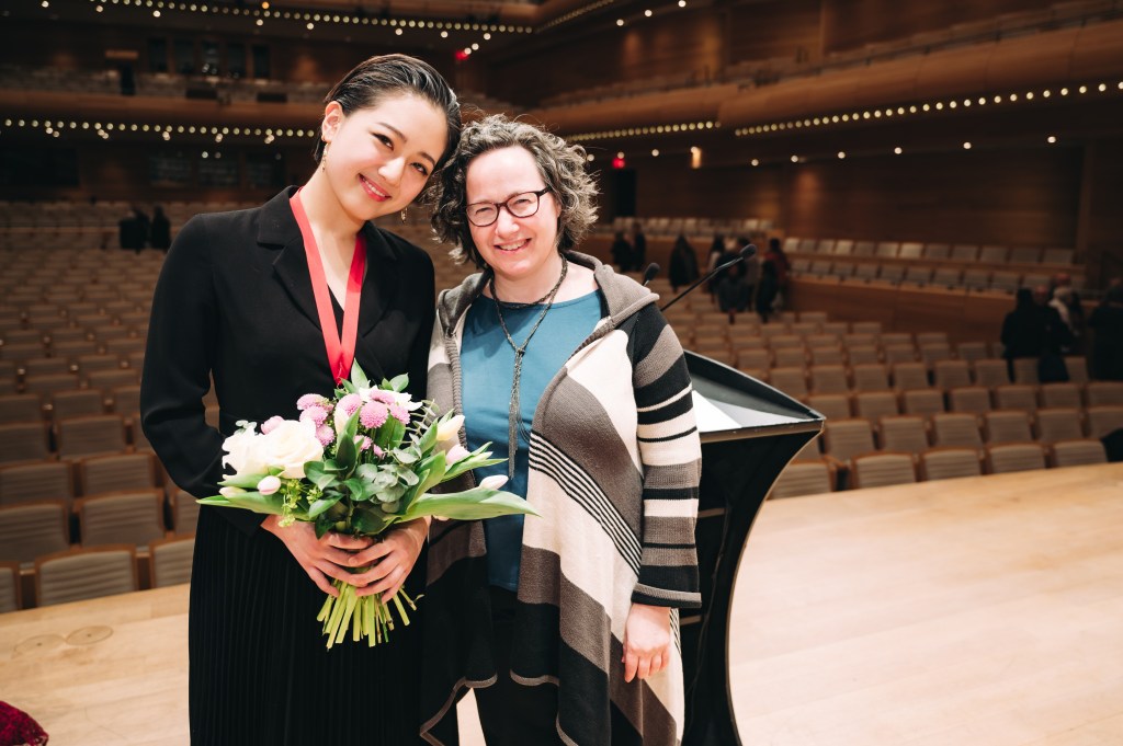 We are happy to share this wonderful photo of Luna Pearl Woolf and the award winner of the André Bachand Award for the Best performance of an imposed Canadian work (offered by Claudette Hould), Songha Choi!