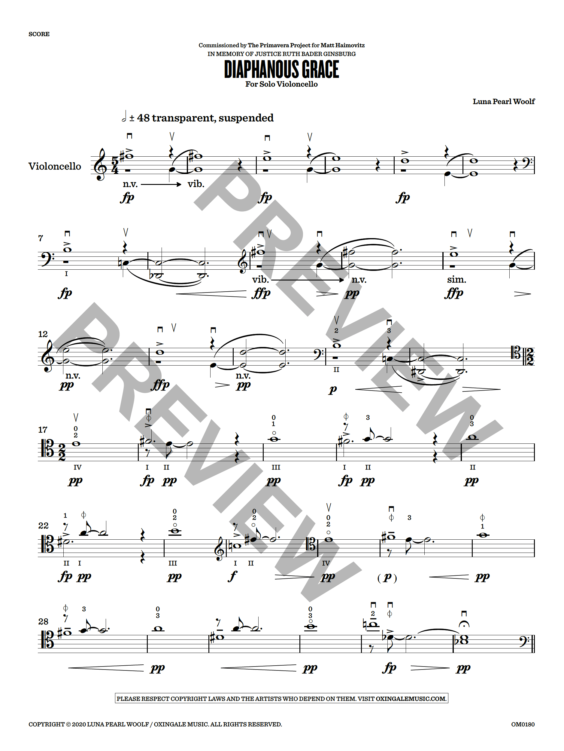 By Luna Pearl Woolf | For Solo Violoncello | 6′