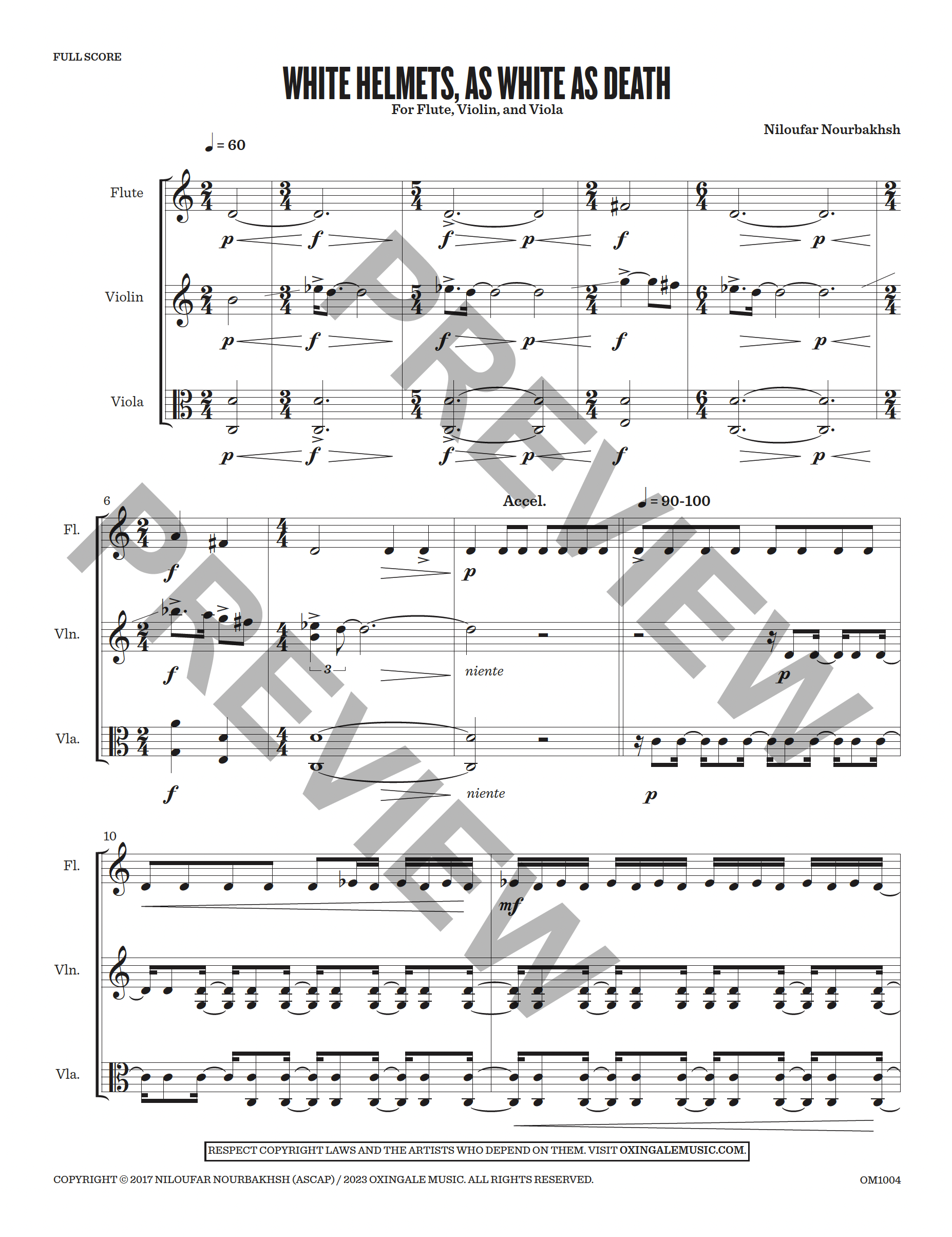 By Niloufar Nourbakhsh | For Flute, Violin, Viola | 8′