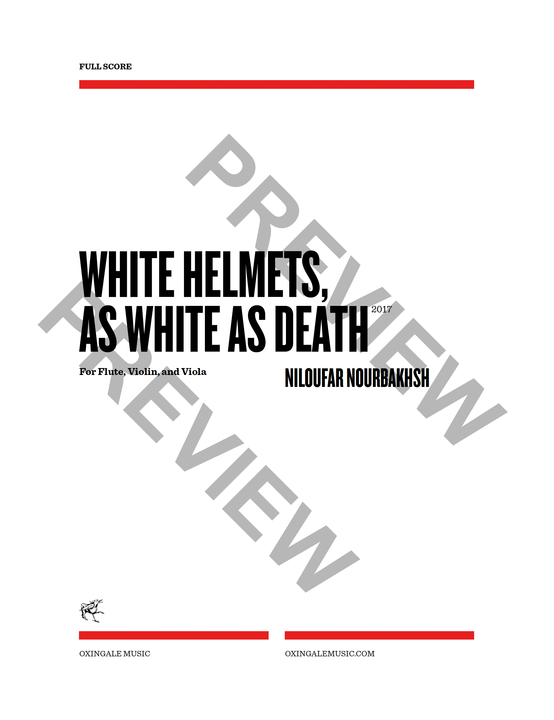 In White helmets, as white as death, I aimed to depict the most beautiful nature of this organization: to remain a human under the most inhumane conditions of war, which brings nothing but a thick blanket of destruction, death, and hopelessness. I searched for beauty in the most extreme and intense instrumental ranges of violin, viola, and flute, because the White Helmets have taught me that we must never give up hope. No matter how extreme the environment is, we must always fight for what’s right.