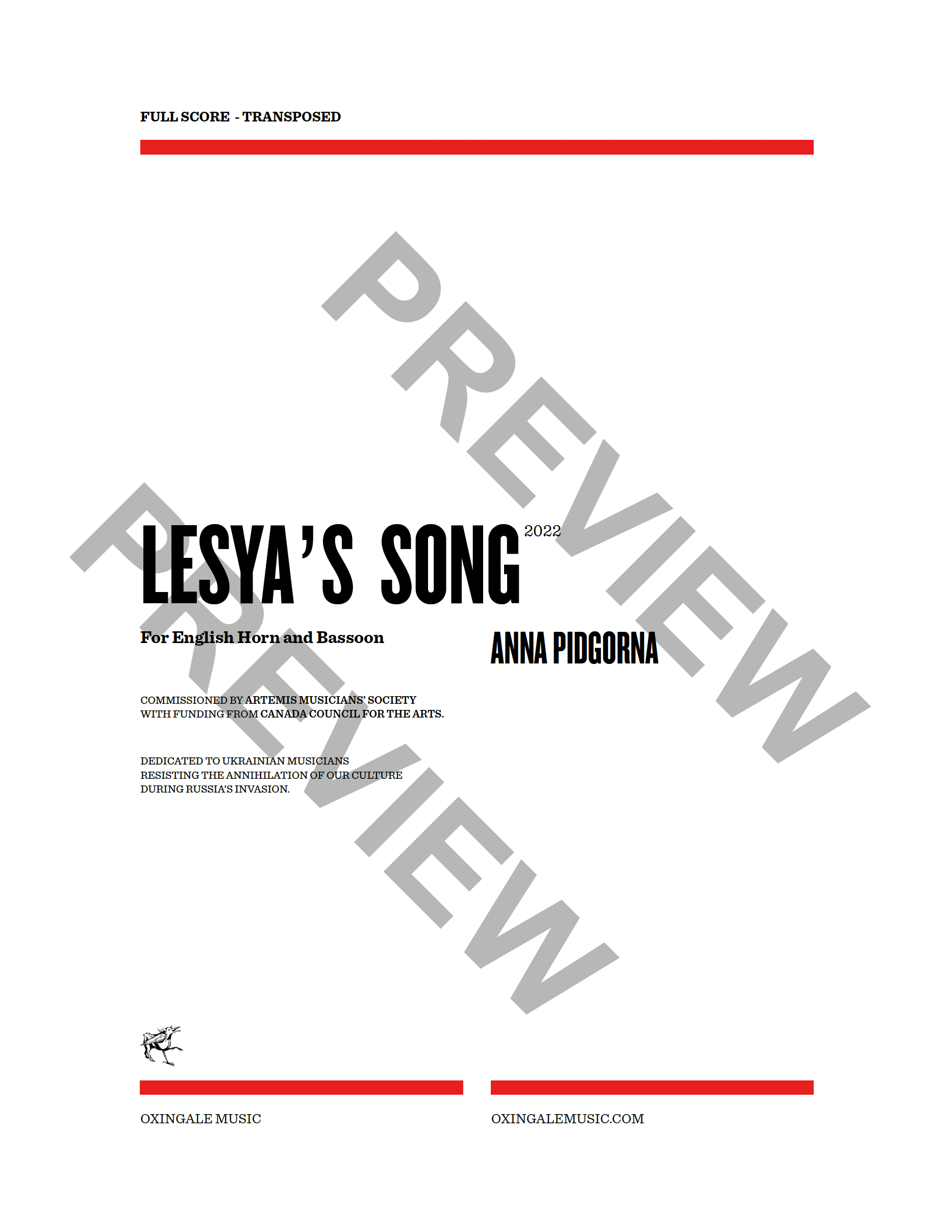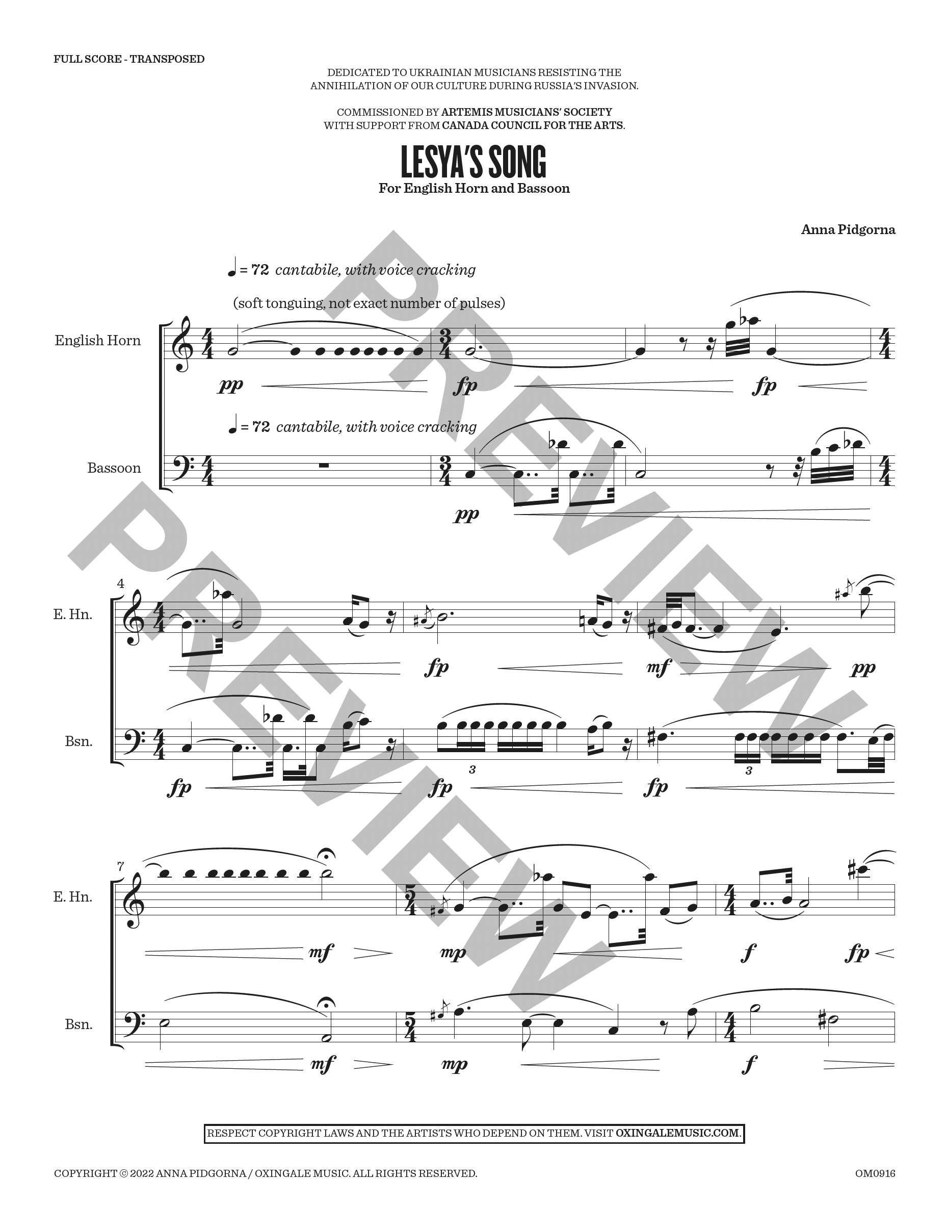 Commission/Dedication: Commissioned by Artemis Musicians’ Society with funding from the Canada Council for the Arts. Dedicated to Ukrainian musicians resisting the annihilation of their culture during Russia’s Invasion.