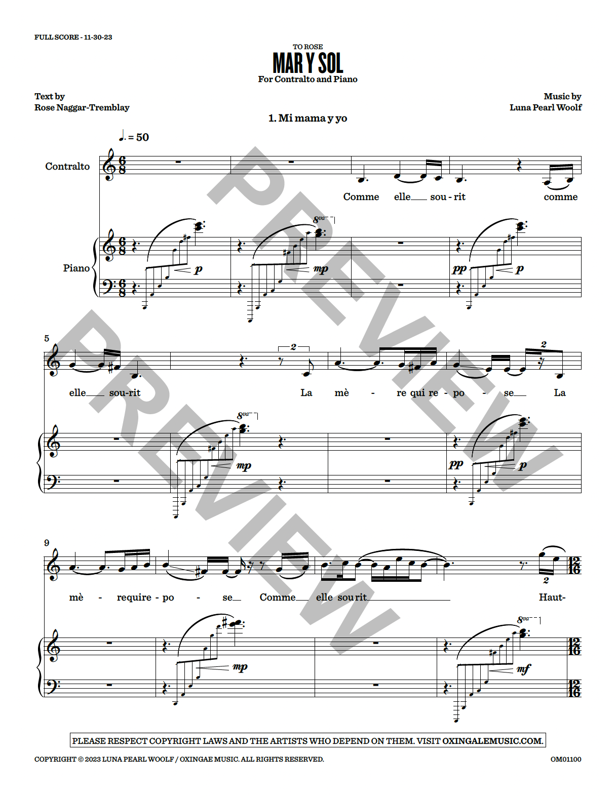 By Luna Pearl Woolf | For Contralto and Piano | 10′