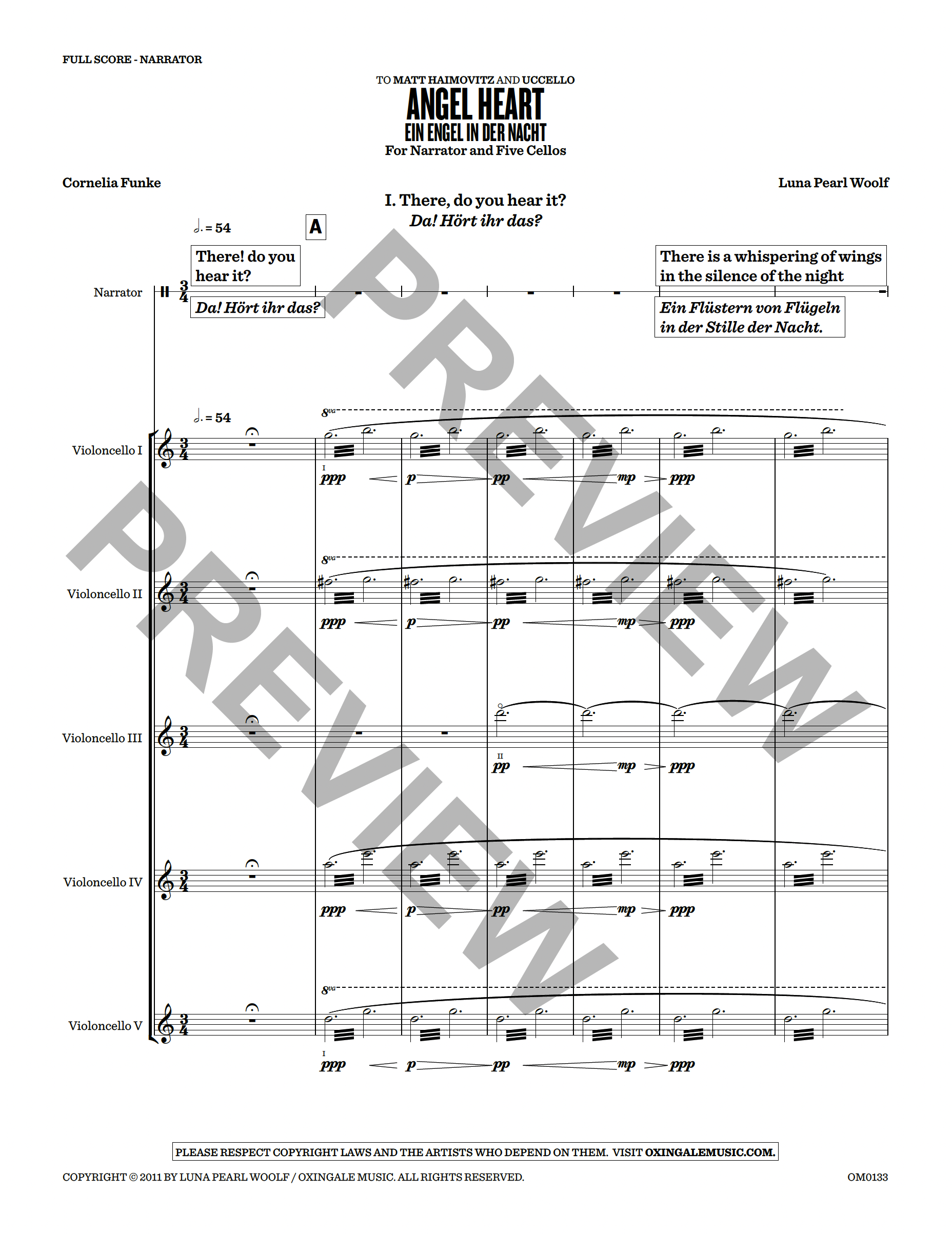 Recording: This work is recorded on the PENTATONE Oxingale Series: ANGEL HEART, a music storybook in English, and EIN ENGEL IN DER NACHT, eine musikalische Erzählung in German.
