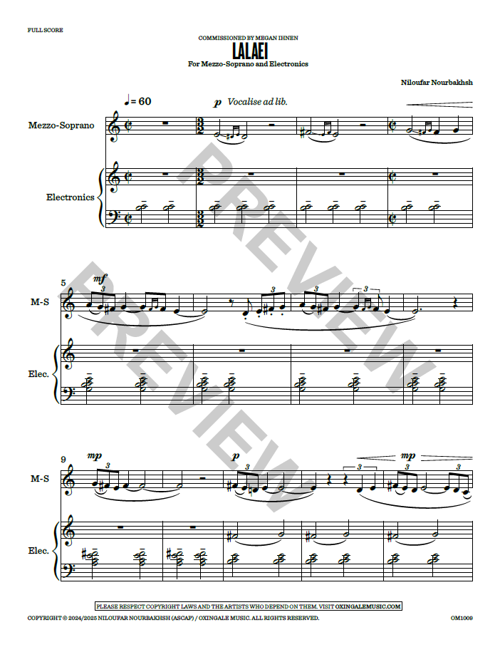 Premiere: First performed April 26, 2024 as part of the Emruz Festival the National Sawdust in Brooklyn, NY by vocalist Mehry Eslaminia.
