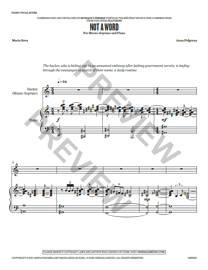 By Anna Pidgorna | For Mezzo-Soprano and Piano | From the opera Plaything | 7′